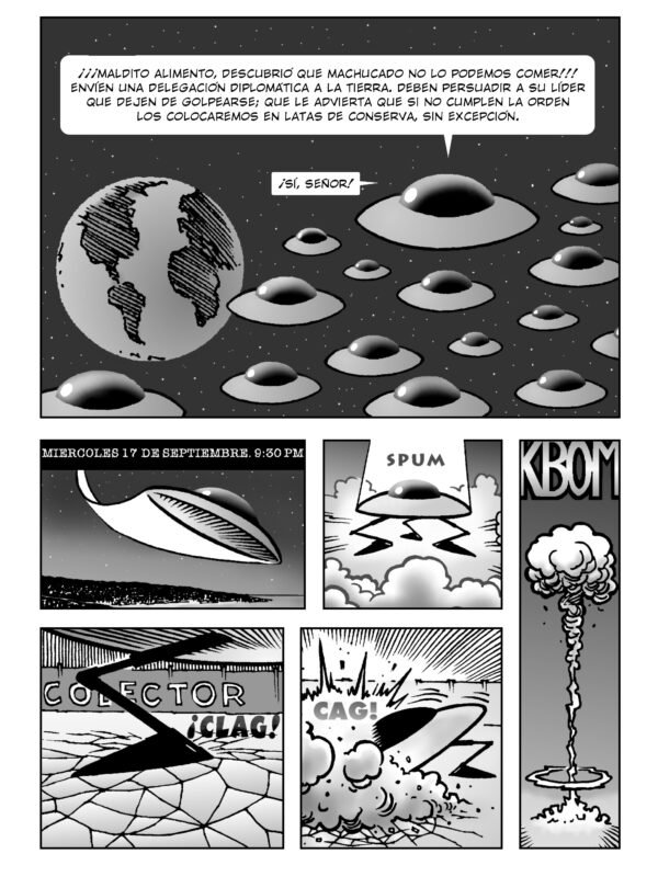 Creado completamente en solitario, este cómic te lleva al corazón del 18 de septiembre, cuando las fondas, las empanadas y la cueca se convierten en el telón de fondo de un ataque alienígena. Con un humor lleno de chilenismos y una sátira social muy aguda, 18-S te muestra cómo reaccionarían los chilenos ante una amenaza intergaláctica.